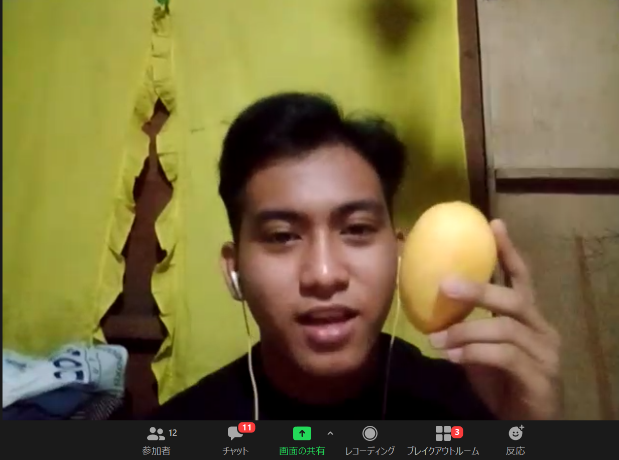 伝わったのかはわからないけど英語で自己紹介できてよかったです。また、積極的に発言、交流ができたので達成感でいっぱいです。フィリピンについて興味がわいたのでもっと交流できる機会があれば是非参加したいと思います。