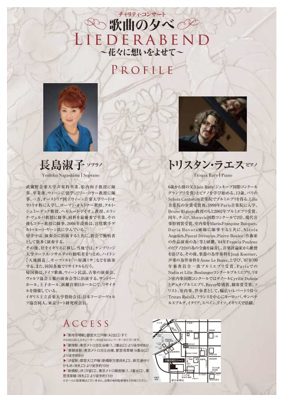 出演:長島淑子(ソプラノ)、トリスタン・ラエス(ピアノ)