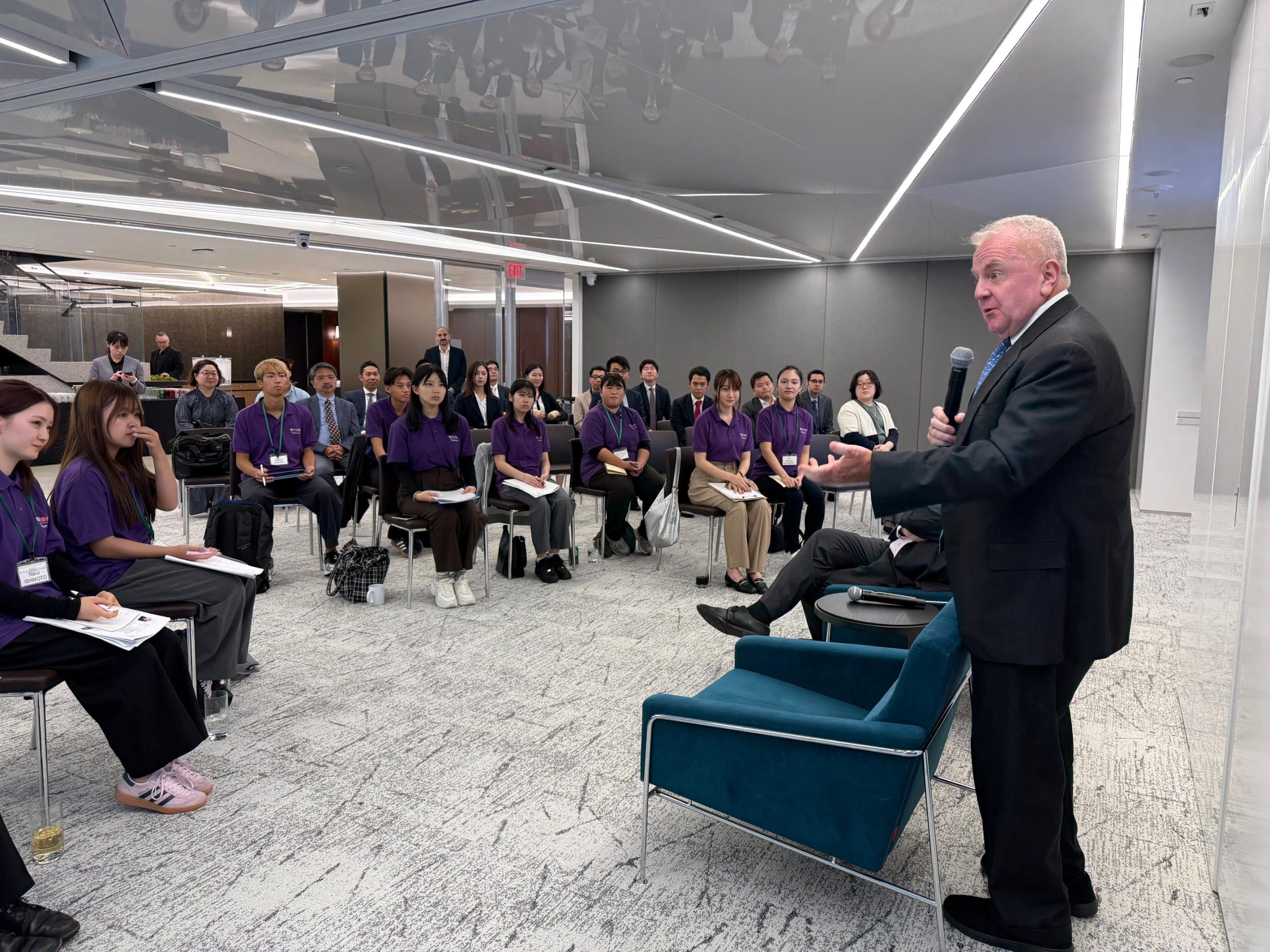 メイヤー・ブラウン法律事務所において、ジョン·サリバン元駐ロシア米国大使による講和や、ワシントンD.C.在住の日本人弁護士や支援者の方々と交流しました。ジョン・サリバン氏からは、国務次官また駐ロシア大使として、米国の外交の最前線を担った際に心がけた、「他者を理解する力」、 「相手は何を求めているかを読み解く力」について語られ、学生からの質問にも丁寧に答えていただきました。