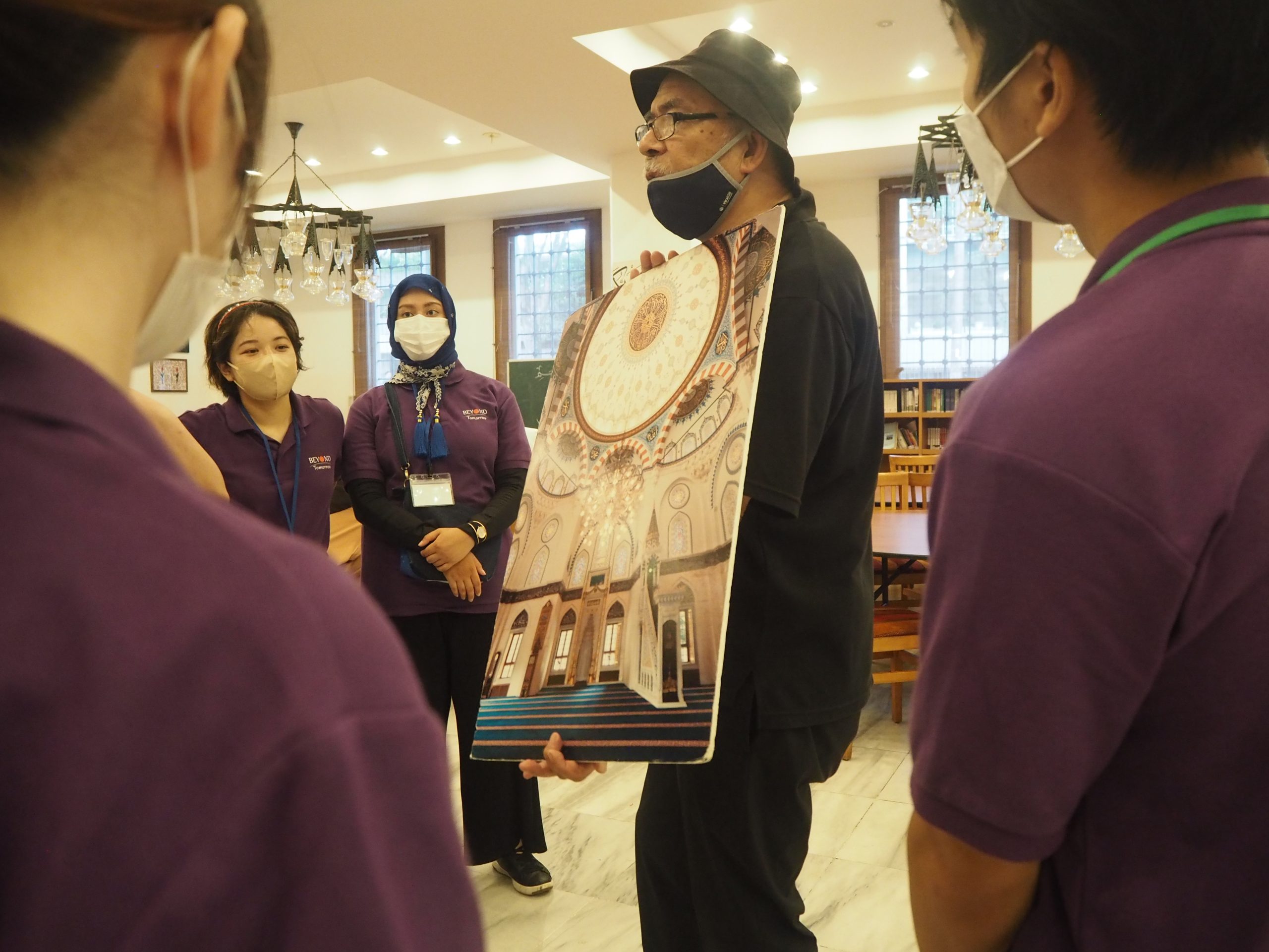 In addition, the students visited a mosque named “Tokyo Camii” in Yoyogi-Uehara. Overwhelmed by the beauty of the mosque’s structure, they listened to the stories made by Sigeki Simoyama who is a personnel in the mosque about the contribution to the world which Isramic culture has and misconceptions which Japanese people have to this culture.