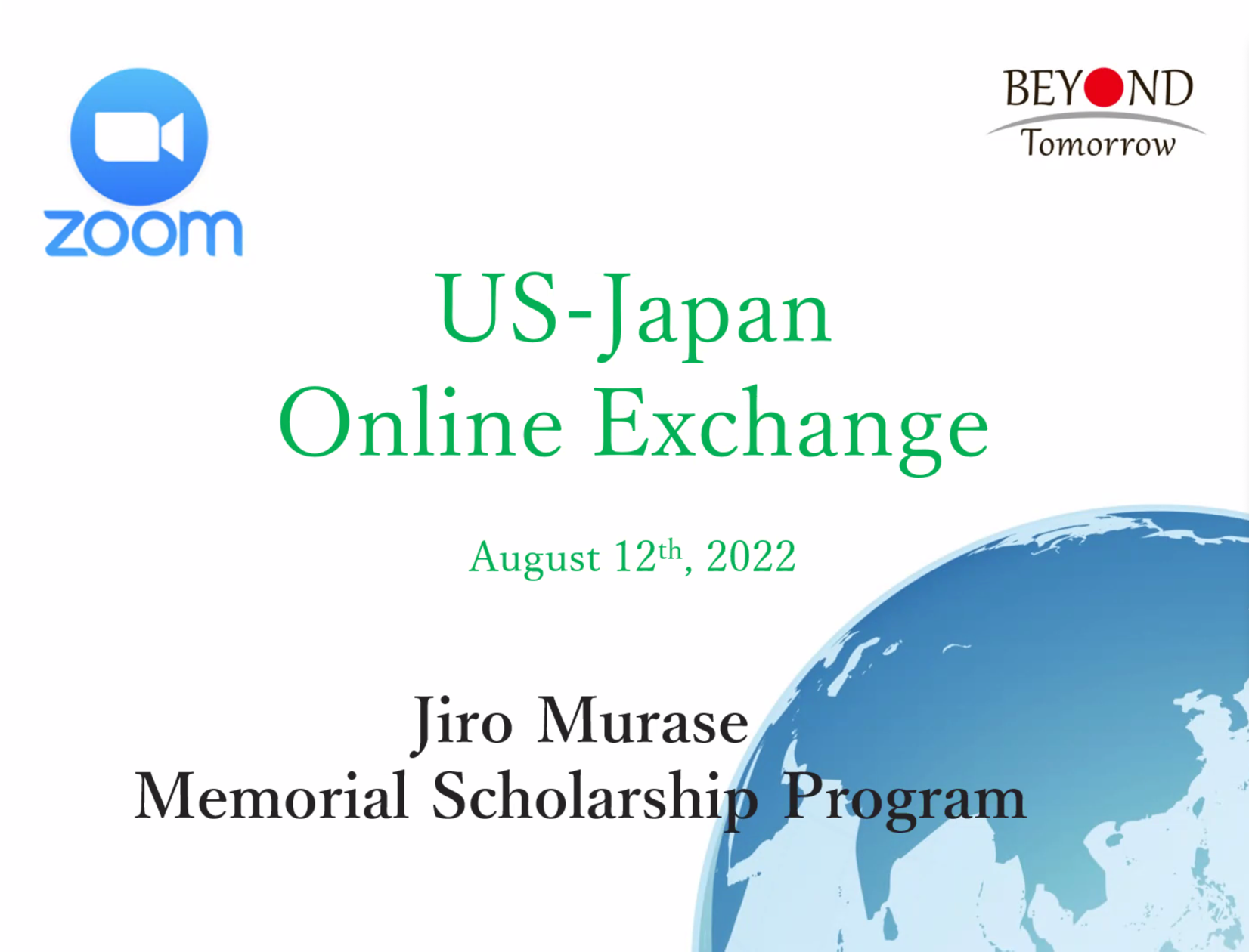 In the program held at night in August 12th, the students interacted with people in the United States online. The program which had been held every year by Beyond Tomorrow as a Summer Program in the United States from 2012 is now held as Murase Jiro Memorial Scholarship Enterprises from 2015. This program was able to be held by a willingness of Murase Satoru who is a son of Murase Jiro and a commisioner of Beyond Tommorow. He wanted students to interact with people in the United States even if it is difficult to go to this country because of COVID-19.